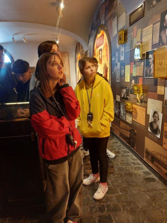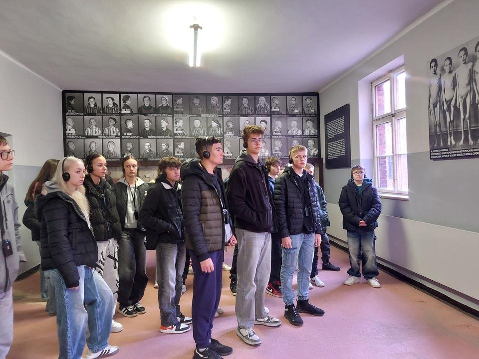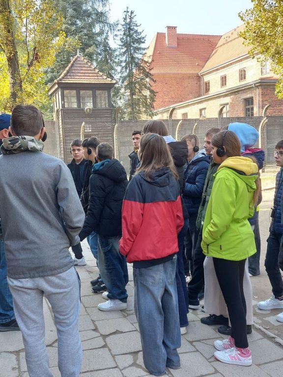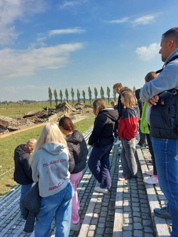 Na teren niemieckiego obozu Auschwitz I przeszliśmy przez jego główną bramę z szyderczym napisem „Arbeit macht frei”(„Praca czyni wolnym”). Zobaczyliśmy bloki, w których więzieni byli mężczyźni, kobiety i dzieci. Z ogromną uwagą i przejęciem oglądaliśmy zdjęcia oraz osobiste przedmioty należące do więźniów. W milczeniu przeszliśmy obok celi, w której oprawcy uśmiercili św. Maksymiliana Kolbe. Przy Ścianie Straceń, która przylega do bloku 11 - „Bloku Śmierci”, zwanego przez więźniów „piekłem w piekle” oddaliśmy hołd wszystkim zamordowanym w obozie. W skupieniu słuchaliśmy opowieści przewodnika o warunkach, w jakich żyli i pracowali więźniowie i o ich nieludzkim traktowaniu przez niemieckich oprawców. Trudno nam było uwierzyć, że człowiek może zadać drugiemu człowiekowi tyle bólu i cierpienia. Następnie udaliśmy się do Auschwitz II – Birkenau, gdzie zlokalizowane są baraki dla więźniów, ruiny krematoriów, doły spaleniskowe oraz rampy wyładowcze, na których lekarz SS dokonywał selekcji przywożonych osób. W tej „fabryce śmierci” Niemcy w bestialski sposób pozbawili życia około 1,6 mln osób różnych narodowości, z których największą liczbę stanowili Żydzi, Polacy, Romowie oraz sowieccy jeńcy wojenni.