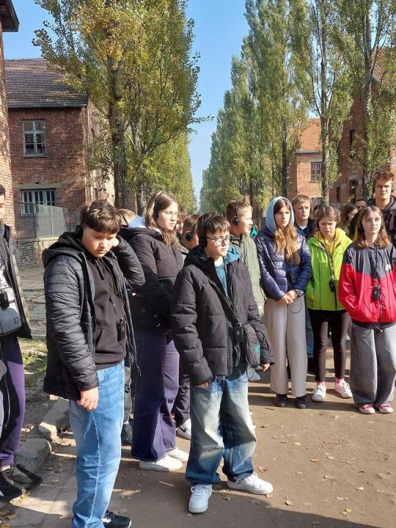 3 października uczestniczyliśmy w wycieczce do Oświęcimia i Wadowic. Tę niezwykłą lekcję historii rozpoczęliśmy od zwiedzania Muzeum Auschwitz-Birkenau – byłego obozu koncentracyjnego, utworzonego przez niemieckich okupantów na terenie Oświęcimia i okolicznych wsi. Miejscowości te po wybuchu II wojny światowej zostały włączone do III Rzeszy. Bezpośrednim powodem powstania obozu była powiększająca się liczba aresztowanych masowo Polaków i przepełnione więzienia. Pierwszy transport Polaków dotarł do KL Auschwitz 14 czerwca 1940 r. z więzienia w Tarnowie. Później przychodziły tu transporty więźniów z całej Europy.