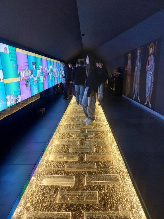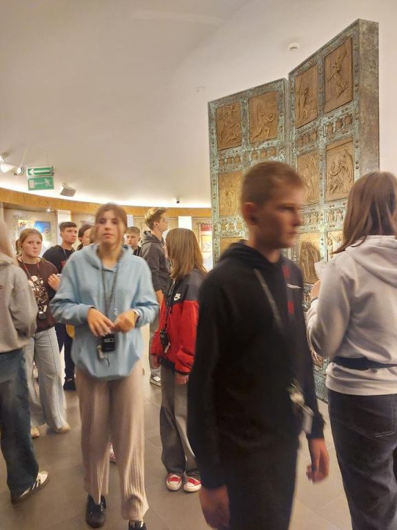 Kolejnym punktem w programie naszej wycieczki była wizyta w Wadowicach – rodzinnym mieście Jana Pawła II. W Muzeum Domu Rodzinnym Ojca Świętego Jana Pawła II mieliśmy okazję poznać historię tego wyjątkowego Polaka. Podczas zwiedzania usłyszeliśmy opowieść o człowieku pełnym pasji i radości życia, sportowcu, aktorze i poecie; o człowieku szlachetnym i mądrym; o kapłanie i pasterzu kochającym młodzież, który w pięknie i potędze natury widział piękno i wielkość Boga. W tym nowoczesnym multimedialnym muzeum zobaczyliśmy zdjęcia i pamiątki należące do rodziny Wojtyłów, a także przedmioty będące własnością przyszłego papieża; sprzęt narciarski, trampki, latarkę oraz przedmioty używane w czasie górskich wędrówek. W gablotach umieszczone są też sutanny Jana Pawła II, w tym pierwsza papieska, w której 16 października 1978 roku pozdrowił wiernych zgromadzonych na placu św. Piotra, a także autentyczny pistolet Ali Agcy, a nawet garnitur papieskiego ochroniarza Francesco Pasanisiego poplamiony krwią Jana Pawła II. Widzieliśmy też pamiątki z apostolskich podróży Ojca Świętego, w tym gabloty z ziemią z blisko 100 miejsc, które odwiedził. Mieliśmy tez okazję zobaczyć eksponaty związane ze śmiercią i pogrzebem Papieża Polaka: Pismo Święte, zegar z apartamentów papieskich zatrzymany 2 kwietnia 2005 o 21.37 oraz szaty kardynałów z mszy pogrzebowej. Nie sposób wymienić wszystkie pamiątki zgromadzone w tym multimedialnym muzeum.
