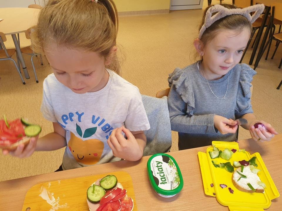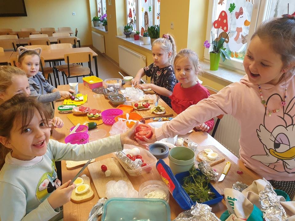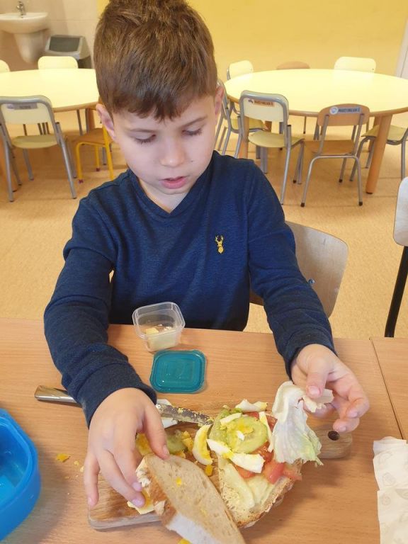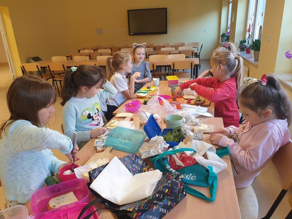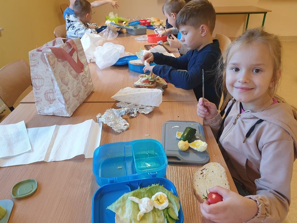 5 listopada, z samego rana, dzieci z kl. 1 przygotowały świeże, kolorowe a przede wszystkim zdrowe kanapki na drugie śniadanie w szkole. Z wielkim przejęciem i starannością kroiły i układały produkty. Pomagały sobie również i dzieliły się produktami. Na koniec z wielkim apetytem zjadły własnoręcznie przygotowane kanapki i bułeczki. W świetnej atmosferze spędziły razem czas na kulinarnych zmaganiach.